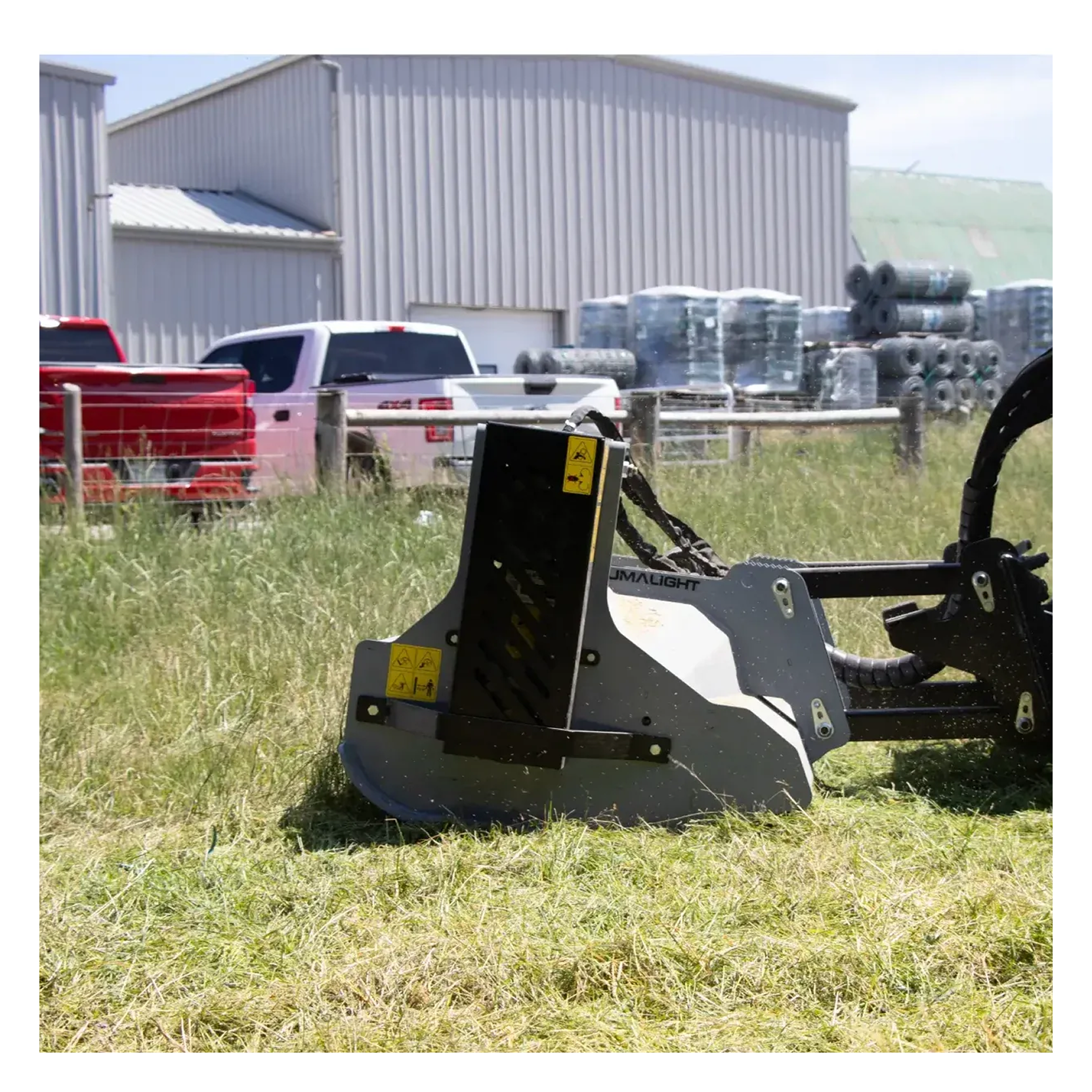 Built with heavy-duty components, including front safety chains and a reinforced mower deck, this unit is engineered to handle tough terrain while keeping operators safe. Its wide hydraulic flow range (8–35 GPM) makes it compatible with most mid-to-large skid steers.