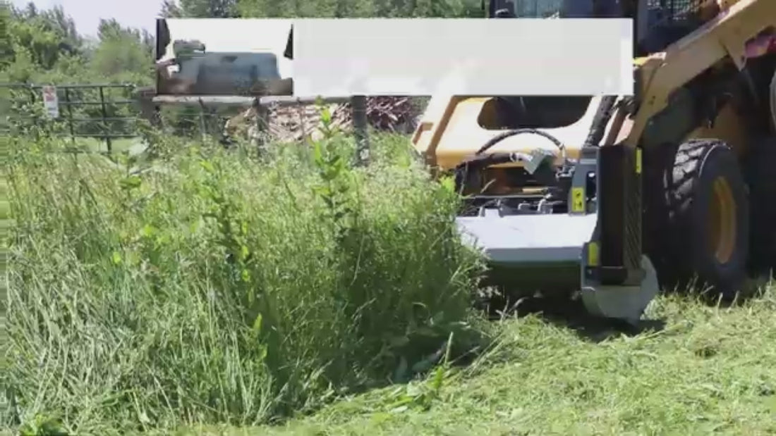 A flail mower uses flail hammers for a finer, cleaner cut—ideal for grass and brush. A rotary cutter uses blades for rougher, faster clearing.